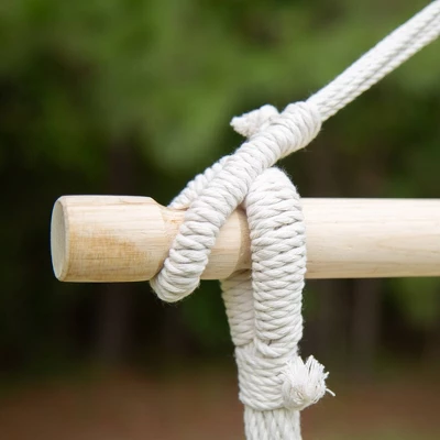 Add ultimate comfort to your backyard or patio space with this Cushioned Hammock Chair with Spreader Bar from Threshold™. Crafted from weather-resistant material for convenient outdoor use, this hammock chair comes with seat cushions for cozy lounging, while the wooden spreader bar adds extra comfort and makes it easier to climb in. Hang this cushioned hammock chair from a tree branch or porch ceiling to create a great spot to enjoy peaceful moments outdoors.