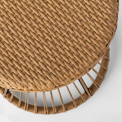 Give your patio or deck the perfect update with the warm, rustic flair of this 3-Piece Mulberry Patio Chat Set from Opalhouse™ dressing up your outdoor setting. Sturdy yet stylish, this three-piece patio set features a stainless steel frame wrapped snugly in faux-rattan, and includes two armchairs that can be clustered around the coordinating round accent table. The semicircular armchairs come in a cozy wingback style with raised sides, while the allover woven pattern lends decorative flair to the whole. Thick seat and back cushions just add to the cozy-comfy seating experience. The round accent table comes with a matching faux-rattan tabletop and an hourglass frame, making it the perfect spot to rest beverages and snacks.